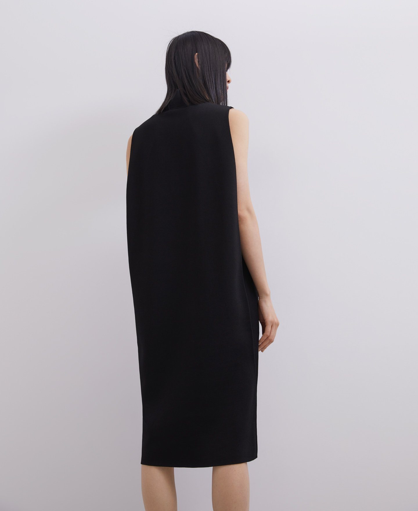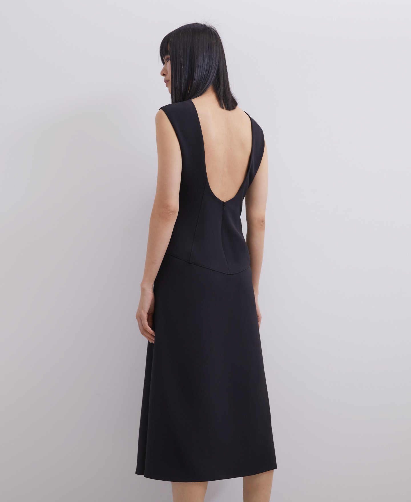 O el vestido midi en negro, con la espalda al aire. O también, el vestido midi con capa trasera.