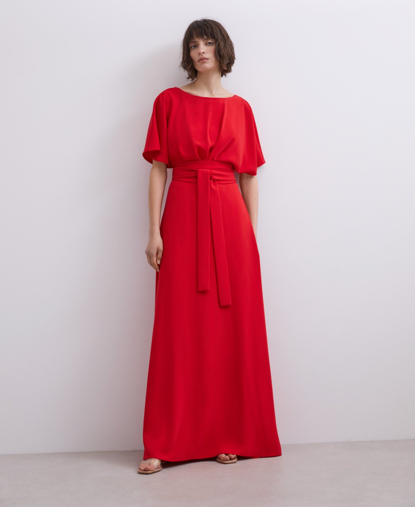 Y si lo que buscas son vestidos que destaquen no solo por su diseño largo sino también por su color, nada como elegir el modelo en color rojo con cinturón que vemos a continuación.