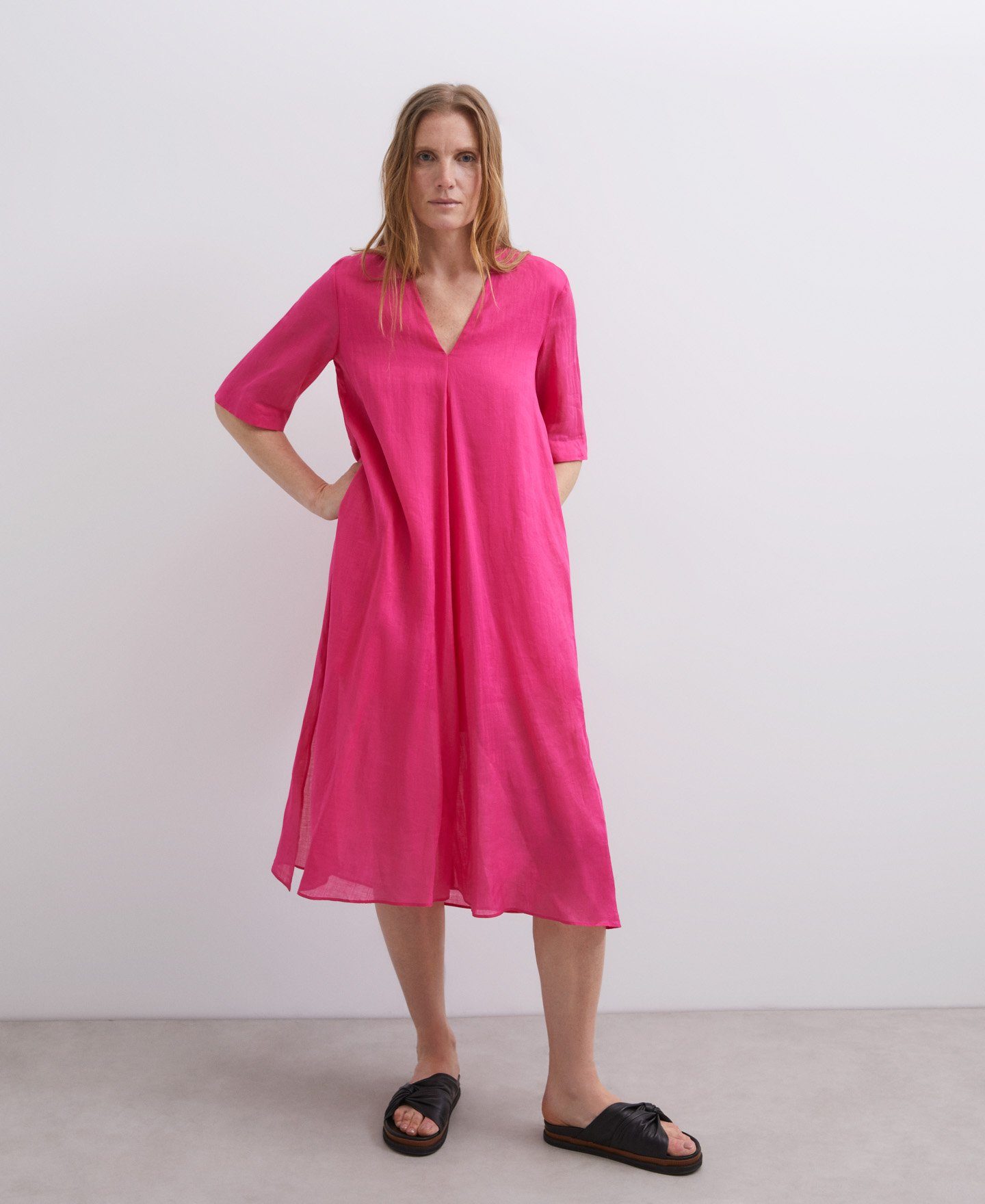 Y si deseas lucir cómoda este verano, nada como elegir también el vestido fluido en color fucsia que es sin duda, espectacular.