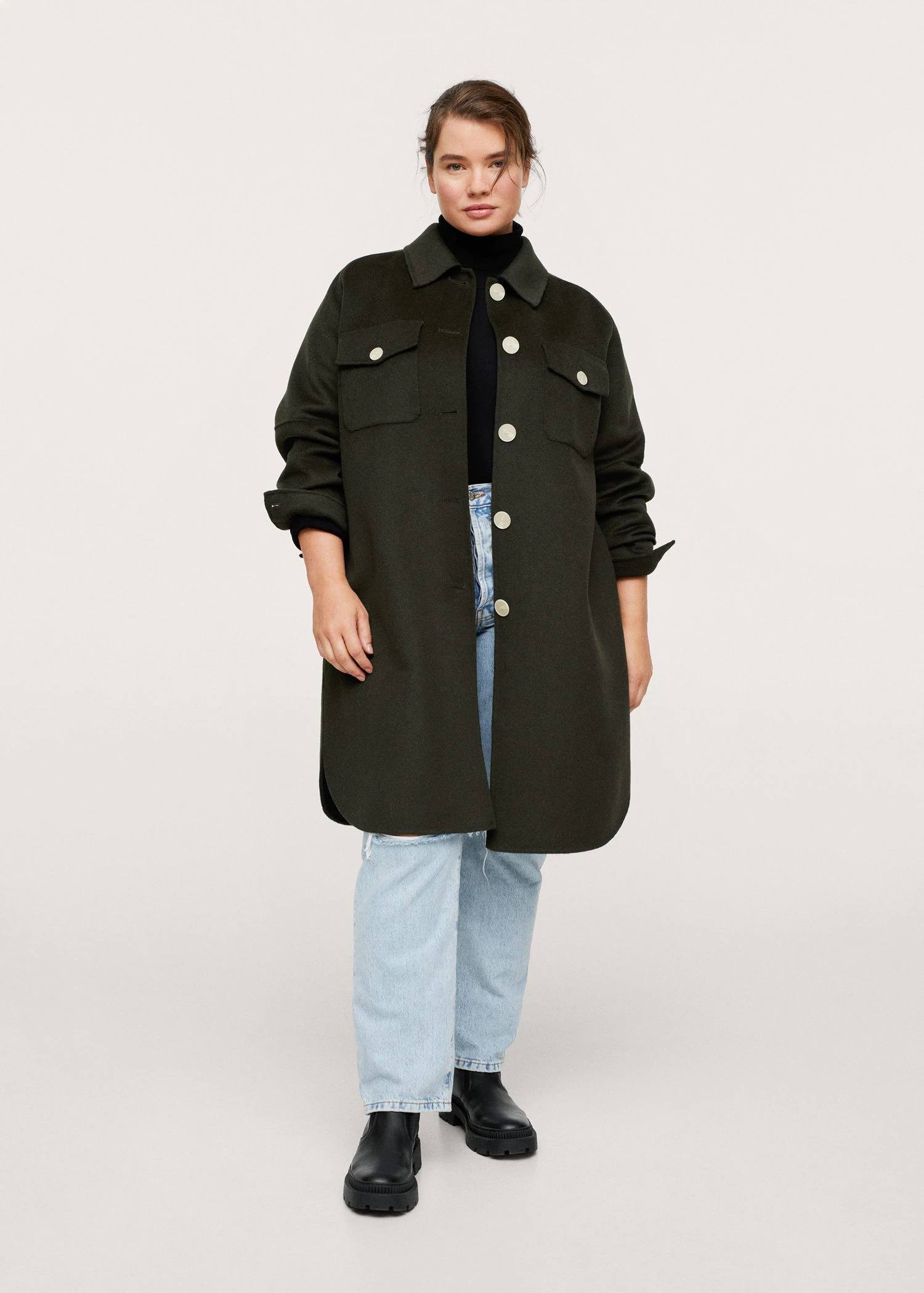 El catálogo de Mango es muy amplio y variado y por ello, aunque ahora ya no existe Violeta by Mango, tenemos que decir que las propuestas de tallas grandes de la firma son ahora muchas más. Por ejemplo, vais a encontrar muchos más abrigos entre los que destacan los modelos de lana con diseño oversize o los de doble botonadura.