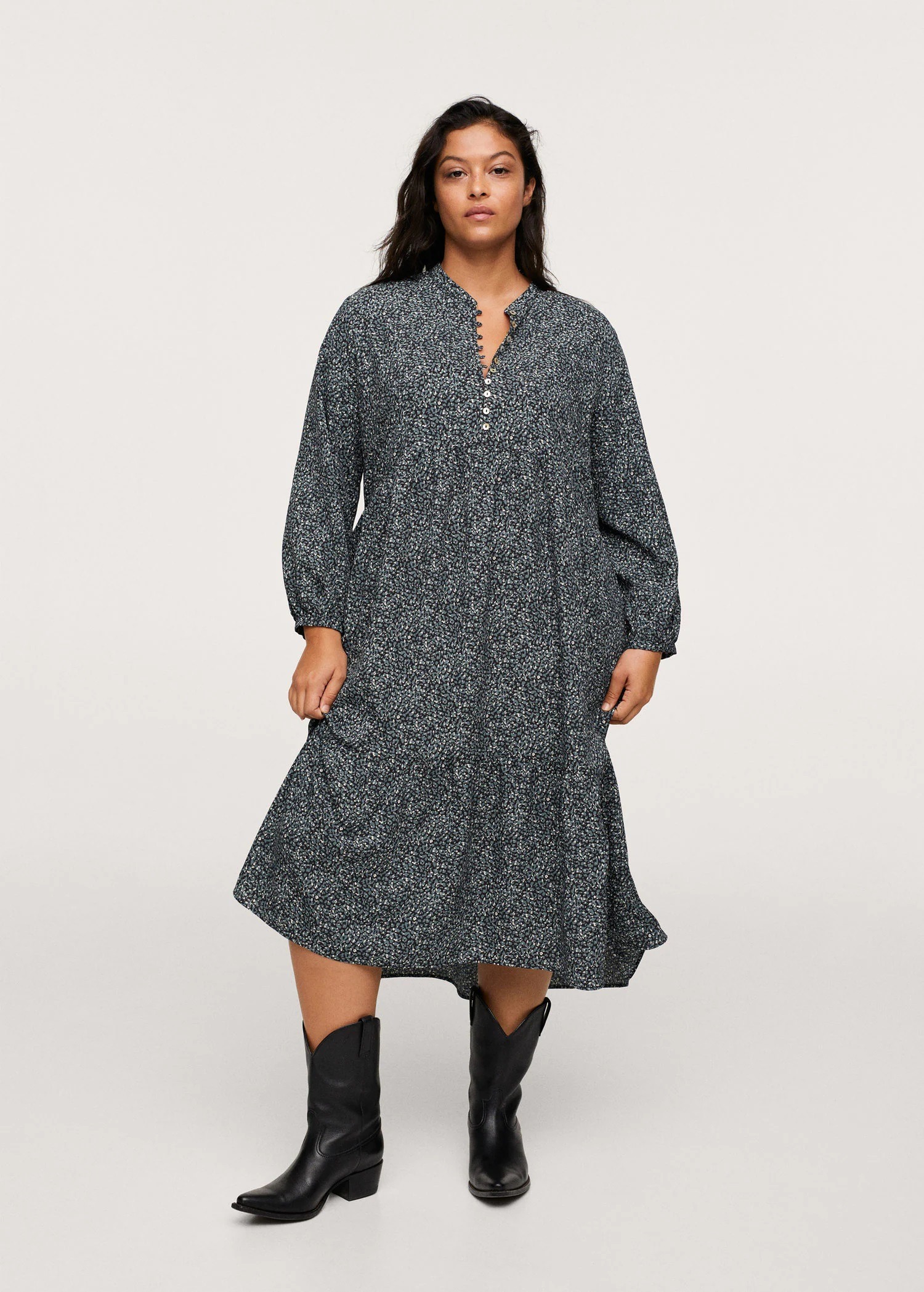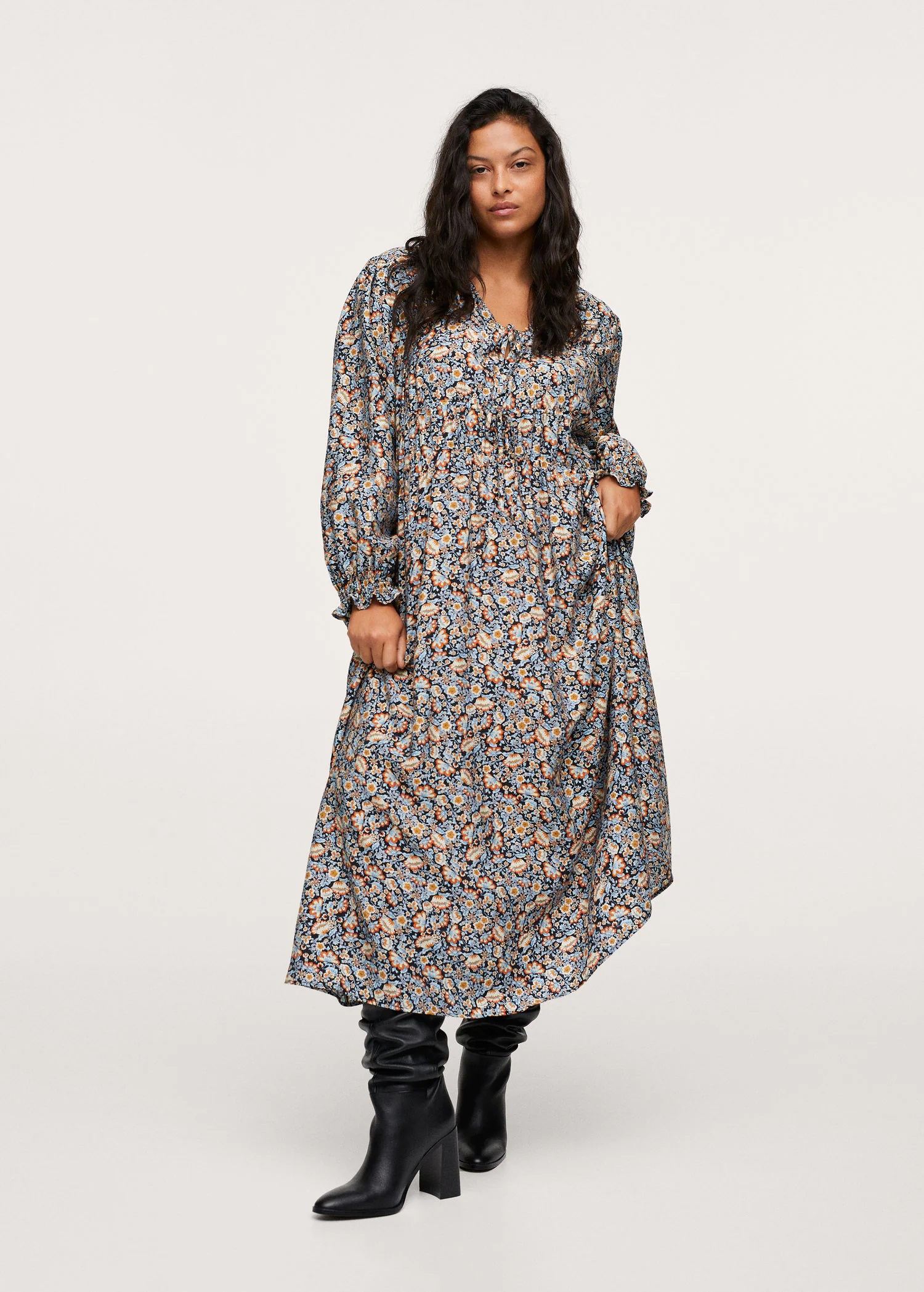 El catálogo de Mango para Otoño Invierno en tallas plus, cuenta también con varios modelos de vestidos perfectos para la temporada. Vestidos que cuentan con diseños de punto que son los más adecuados para combatir el frío, así como aquellos que destacan por estampados románticos con detalles como los lazos o diseños como el patchwork.